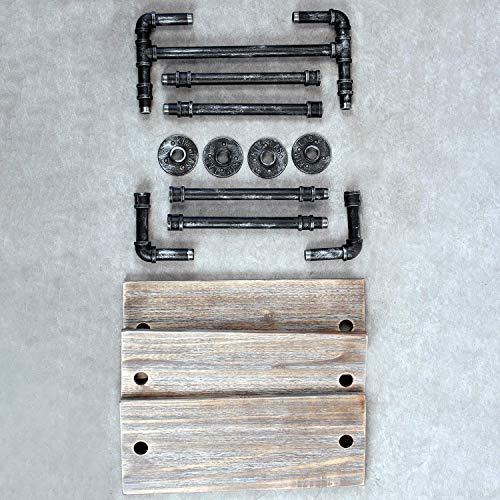 Stile retrò: tubi di ferro e composizione in vero legno rigenerato in stile vintage. Conservazione e decorazioni.Può essere utilizzato anche all’aperto.