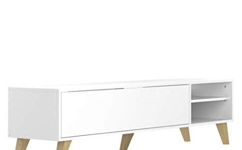Marchio Amazon – Movian Enol – Mobile TV, 165 x 40 x 43.2 cm (L x P x A), colore bianco / gambe in faggio