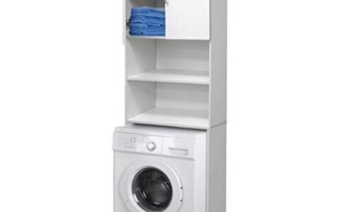 ECD Germany Mobile per Lavatrice Mobiletto Bagno 62,5 x 25 x 190 cm Salvaspazio Armadio Bagno Coprilavatrice Mobili Arredo Bagno Copri Asciugatrice Copri WC con Armadietto 2 Ante Ripiani Legno Bianco