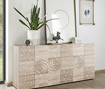 TANTO SPAZIO A DISPOSIZIONE: Questa credenza cucina è dotata di 2 cassetti centrali, 2 armadietti con ante a vetro e mensole regolabili, per riporre oggetti ...