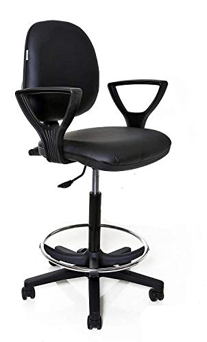SGABELLO GIREVOLE, SEDILE E SCHIENALE CON RIVESTIMENTO, ELEVAZIONE A GAS, BASE E POGGIAPIEDI, CON PIEDINI O RUOTE, SCHIENALE REGOLABILE, CONTATTO PERMANENTE, PRODOTTO ITALIANO