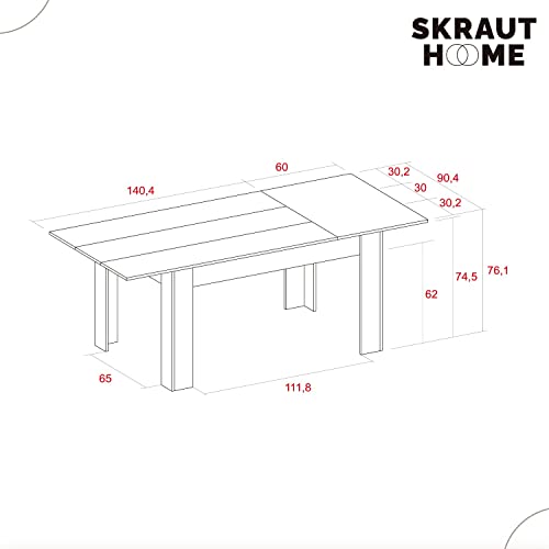 DIVERSE POSSIBILITÀ: le misure del tavolo corrispondono a 76 cm (altezza) x 140 cm (lunghezza) x 90,4 cm (profondità), tenendo conto che la lunghezza può essere estesa a 200 cm. Allo stesso modo, oltre alla versatilità delle sue dimensioni variabili, il suo design elegante e i colori neutri consentono anche un perfetto adattamento a qualsiasi ambiente, sia esso la cucina, il soggiorno o anche il terrazzo.
