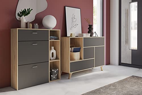 SET INVIO: Questa scarpiera è il miglior alleato per l’organizzazione della tua casa, oltre a svolgere la sua funzione decorativa, potrai mantenere tutte le tue scarpe organizzate evitando di lasciarle fuori dal pavimento, il che può causare una maggiore usura. Inoltre il moderno mobile a buffet ha 3 cassetti grandi, 1 scomparto aperto e 1 anta a battente sul lato destro per una maggiore conservazione.