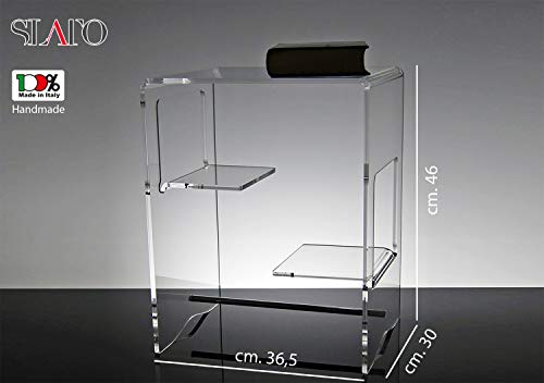 Comodino in plexiglass realizzato artigianalmente con tecnica laser, perfetto per arredare la tua camera da letto.