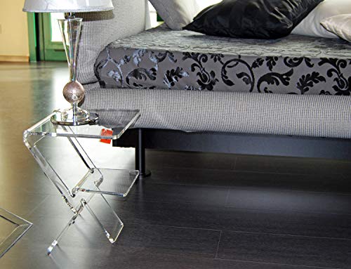 Comodino in plexiglass realizzato artigianalmente con tecnica laser, perfetto per arredare la tua camera da letto.