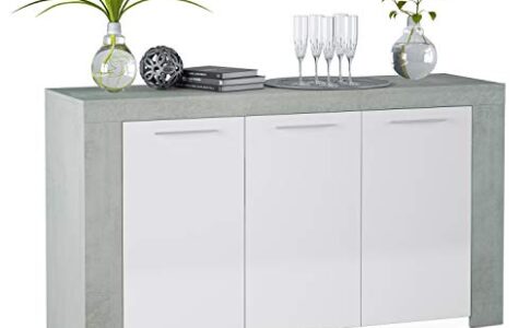 Habitdesign Corinto B04 Buffet, Legno, Bianco/Grigio, 144 x 42 x 80