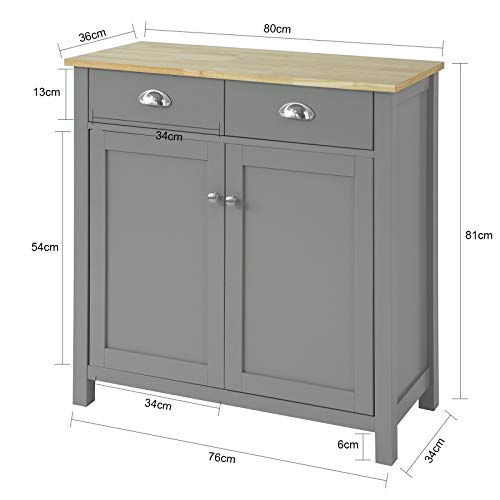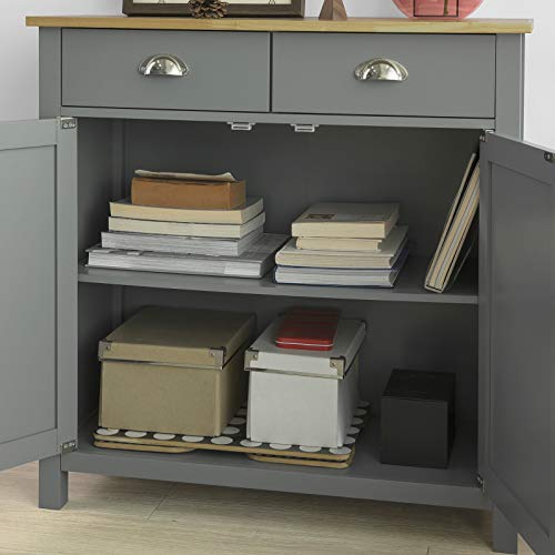 Credenza composta da due ante con ripiano interno e due cassetti.
