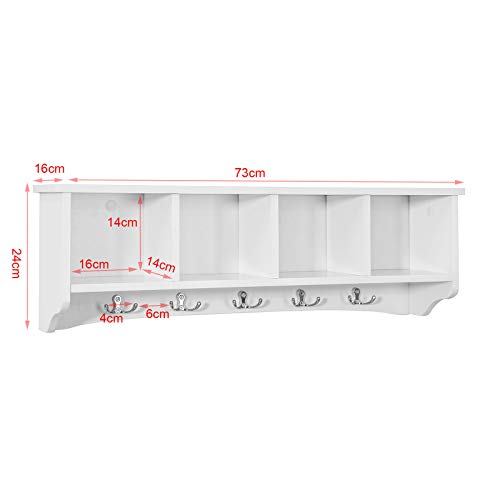 Appendiabiti :73(L)*16(P)*24(A) cm, Peso: 5 kg, Carico massimo: 15 kg ogni ripiano; 1 kg ogni gancio