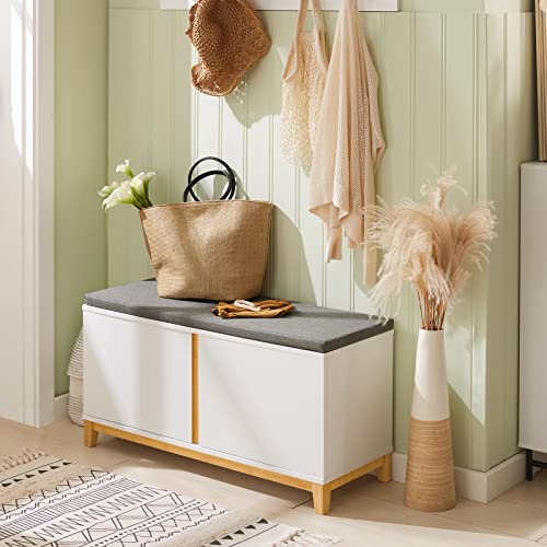 Questa panca per scarpe ha quattro gambe in legno di bambù per garantire stabilità e una forte capacità di carico.