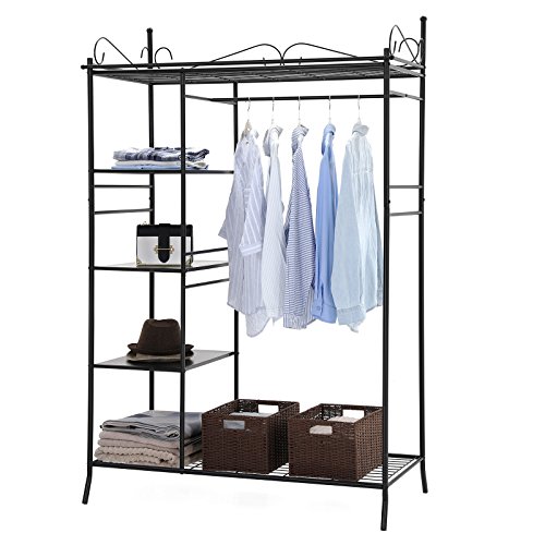 CAPIENTE: I vestiti saranno sempre ben sistemati: gli abiti lunghi, i cappotti possono essere appesi all’asta, i ripiani interni offrono ulteriore spazio per abbigliamento piegato, e il ripiano inferiore di scarpiera dove si mettono le scarpe, scatole, borse ecc.