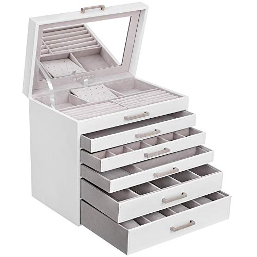 PER I TUOI TESORI DI OGGI E DOMANI: Potrai finalmente svuotare il tuo cassetto pieno di bijoux cui manca un posto adatto e invitarne più a casa tua! Perché questa scatola portagioie ha ben 6 livelli spaziosi per renderli tutti sistemati e facili da usare