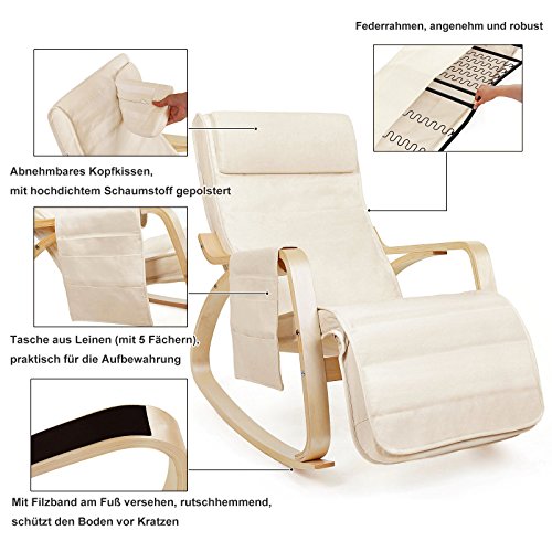 RENDE TUTTO PIÙ PIACEVOLE: Le pause caffè e le coccole ai tuoi piccoli avranno tutto un altro sapore su questa sedia a dondolo. Il design è ergonomico, l’imbottitura è in morbida spugna ad alta densità e il poggiatesta rimovibile fa rilassare il collo