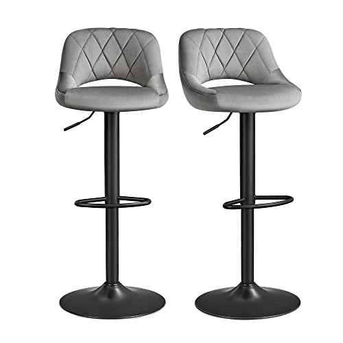 Cosa ottieni: 2 sedie da bar eleganti e regolabili in altezza con rivestimenti in velluto e poggiapiedi, che danno alla tua sala da pranzo la giusta quantità di atmosfera da bar