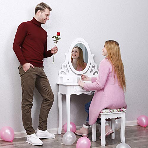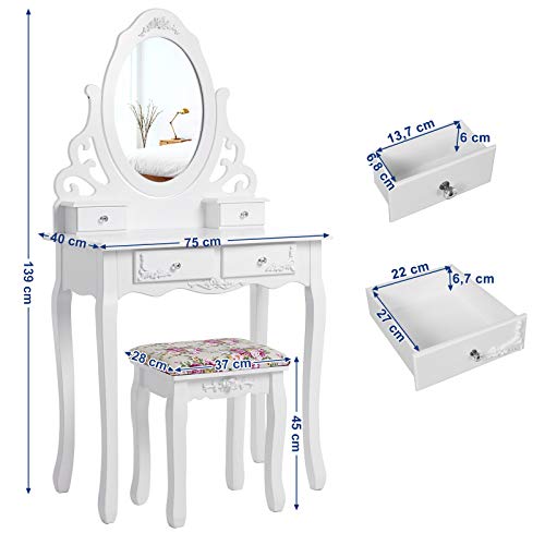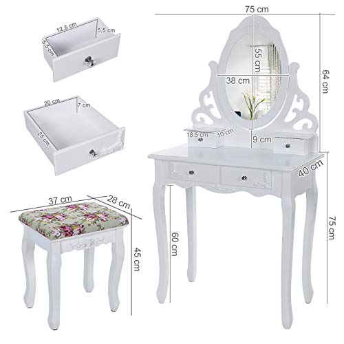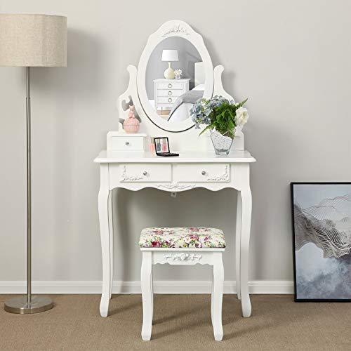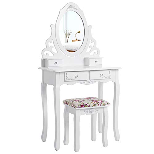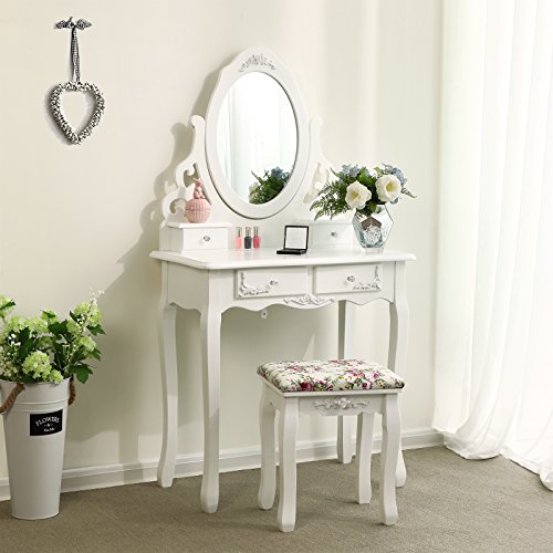 Facile da montare – Il telaio principale è pre-assemblato da professionisti prima della consegna, è necessario solo montare le gambe del tavolo e dello sgabello e la base dello specchio, risparmiando il fastidio