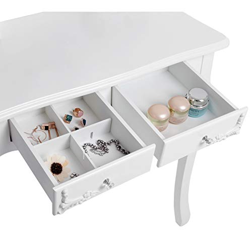 Diaframma del cassetto – Uno dei cassetti di grandi dimensioni è dotato di diaframme, il tavolo fornisce ampio spazio per organizzare il trucco, gli accessori e vi dà un tavolo senza problemi