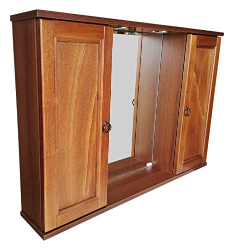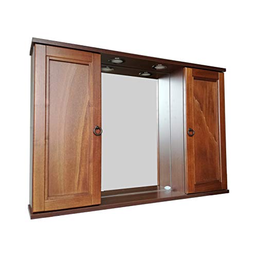 Specchiera pensile in legno massello con 2 ante in legno stile Arte povera.