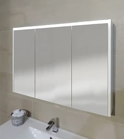 Specchio bagno pensile contenitore a 3 ante con fascia led posta sulla parte superiore, cm.120x67x15. La bellezza di uno specchio led e la comodità di un pensile contenitore adatto ad ogni ambiente.