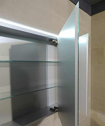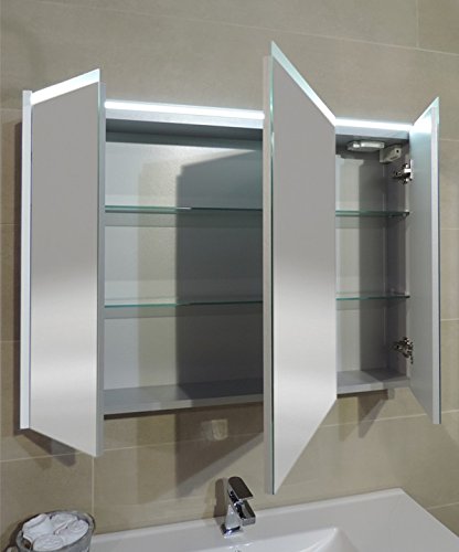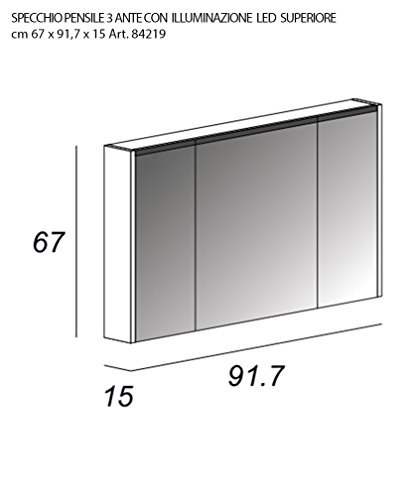 Specchio bagno pensile contenitore a 3 ante con fascia led posta sulla parte superiore, cm.91,7x67x15. La bellezza di uno specchio led e la comodità di un pensile contenitore adatto ad ogni ambiente.