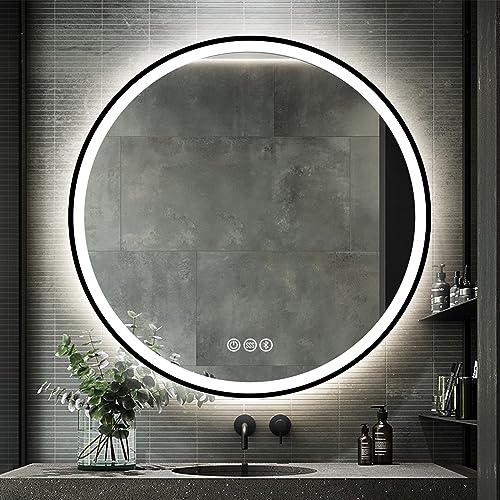 【Design Elegante e Tocco Intelligente】STARLEAD 80 cm Specchio-Rotondo-Bagno-con-Luce ha un rivestimento nero sui bordi, imita le cornici metalliche e offre un aspetto semplice ma non pesante. 3 pulsanti separati per illuminazione, antiappannamento e Bluetooth. Un tenue bagliore intorno ai pulsanti illumina il bagno di notte. È inoltre possibile spegnere questa luce premendo a lungo il pulsante di accensione/spegnimento mentre il LED è spento.