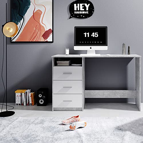 Senza tempo: la combinazione tra il corpo in cemento, rovere Sonoma o bianco e i cassetti in bianco chiaro creano un quadro complessivo armonioso che si adatta facilmente a tutti gli stili di arredamento.