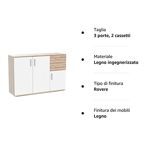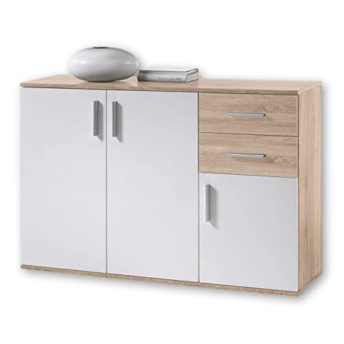 TANTO STOCCAGGIO – La credenza con diverse porte e cassetti offre spazio di stoccaggio per tutti i tipi di cose. Le maniglie di plastica in look alluminio completano la cassettiera e creano un’atmosfera accogliente.