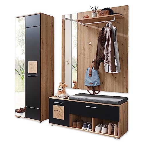 Molto spazio: il set da 3 pezzi composto da un armadio guardaroba, una scarpiera e un pannello con specchio offre ampio spazio per giacche, borse, scarpe e altri piccoli oggetti.