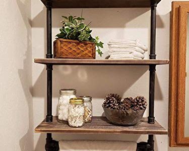 Scaffali da parete per bagno industriali, con porta asciugamani, mensole in legno rustiche, con barra per asciugamani, mensole galleggianti (3 strati)