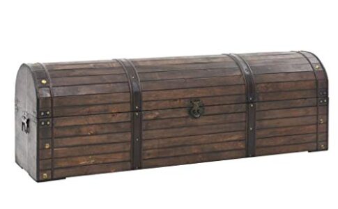 In legno massiccio di alta qualità. Utilizzabile anche come sedutaBaule in legno, scrigno del tesoro, stile coloniale, forziere dei pirati, ...
