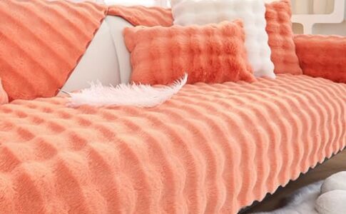 Georcep Thick Rabbit Plush Sofa Cushion – 2024 NewFaux Fur Non Slip Sectional Couch Cover (C-Orange,110 * 210cm/43.3 * 82.7in)