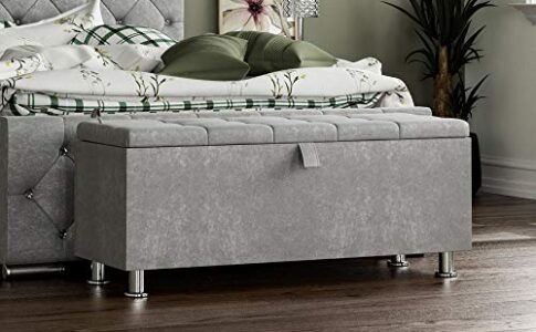 Vida Designs Pouf, Poggiapiedi, in Velluto Argentato, Valencia Ottoman, Fabric with Lid, Seat, Stool, Window Bench, Chest, Toy Storage Box, Pouf, Footstool, Silver Velvet, H 46 x L 102 x P 42 cm