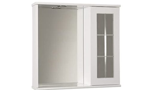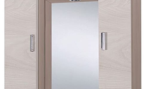 Specchiera Bagno con Pensile, Specchio Bagno con Mobile Verticale – Specchio Bagno con Luce e Armadietto – Compreso di Luce Led Specchio Bagno Luce e Vano Contenitore 1 Anta (120 cm)