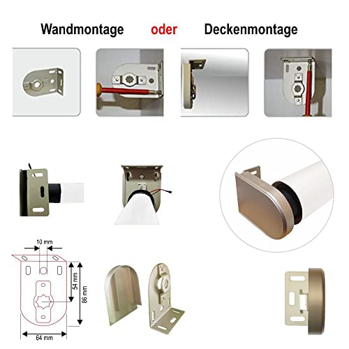Montaggio a parete e soffitto possibile con supporti per tapparelle in dotazione