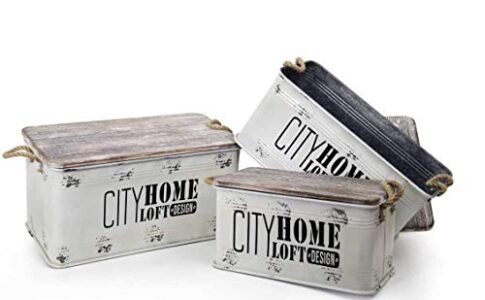 Gicos Import Export Srl Set 3 bauli rettangolari in latta con coperchio in legno colore bianco shabby chic bed-791727