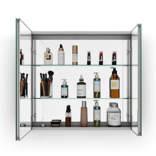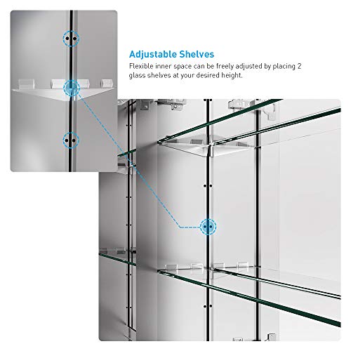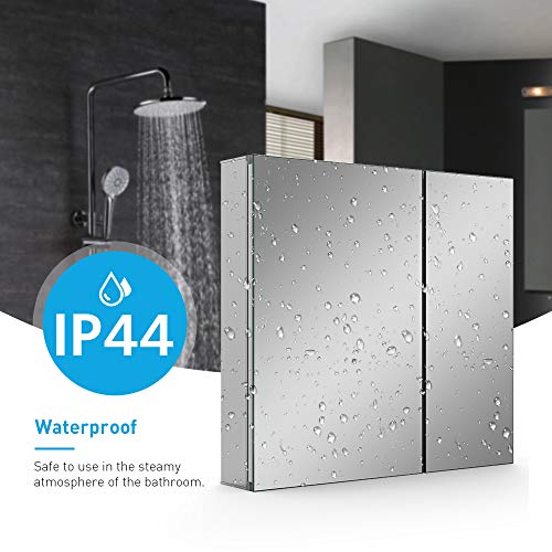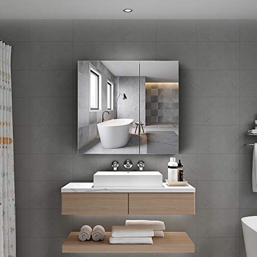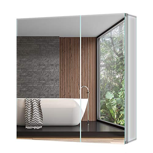 ?Design a doppia porta: 65x60X13cm (LxAxP), specchio in alluminio con spazio di archiviazione più grande per cosmetici, cura midi e necessità quotidiane. Con un design a doppia porta puoi organizzare le cose meglio e in modo più chiaro.