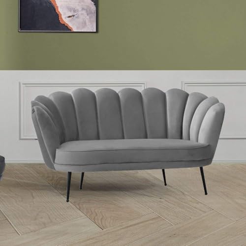 Toscohome Divano due posti a conchiglia in velluto grigio perla – Orel