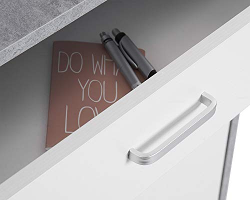 Skraut Home – Madia per Soggiorno o Sala da Pranzo – 86 x 120 x 40 cm – Buffet con 1 Anta + 3 Cassetti – Modello Wind – Legno Resistente – Finitura Cemento/Bianco
