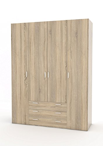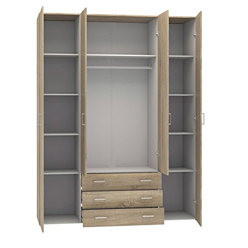 4 ante, 3 cassetti, 8 ripiani regolabili e 1 vano porta abiti