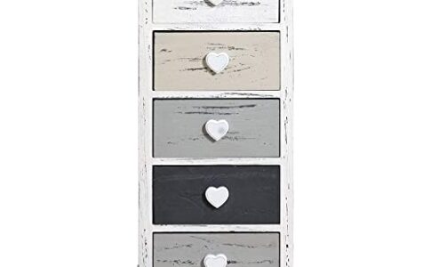 Rebecca Mobili Cassettiera Stretta, Mobile Bagno 5 cassetti, Legno Paulownia, Bianco Grigio Beige Nero, shebby, per Camera Bagno – Misure: 83,5 x 37 x 27 cm (HxLxP) – Art. RE4407