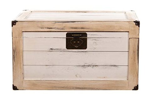 Cassapanca in legno con coperchio rimovibile e spazio per conservare oggetti.