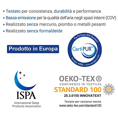 Morbidissimo – 60% poliestere e 40% rayon lavorati con le tecnologie più all’avanguardia per offrirti la massima morbidezza. Completamente RIMOVIBLE e LAVABILE IN LAVATRICE per una facile pulizia e manutenzione. Il nostro rivestimento è stato certificato da ISPA (International Sleep Products Association), CertiPUR-EU e OEKO-TEX per la sua durabilità, performance e contenuto. Non contiene formaldeidi, mercurio, piombo o altri metalli pesanti.