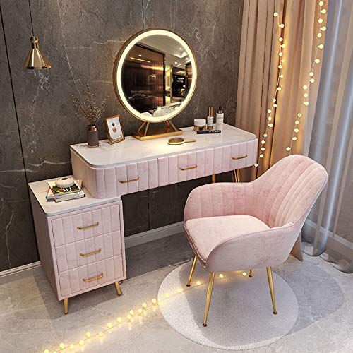 ? MATERIAL: This dressing table Made of carefully selected imitation marble and Iron art, Quality vanity table is wrapped by comfortable velvet, silky and beautiful to the touch. Sturdy and durable in use. Providing sufficient support and stability.