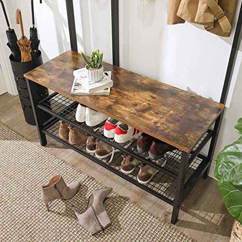 1 SCARPIERA, 2 RIPIANI, 3 POSSIBILITÀ: I due ripiani a griglia stabili di questo appendiabiti possono ospitare una varietà di scarpe. Inoltre, il ripiano inferiore a griglia è a 12,5 cm dal pavimento, lasciando spazio al di sotto per sneaker, scarpe da ginnastica e simili