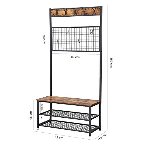 COSTRUZIONE SOLIDA: Con robusti tubi di metallo in una finitura opaca e truciolare in stile rustico, fornisce una panca robusta e stabile che può reggere fino a 100 kg per un adulto su cui sedersi; un kit anti-ribaltamento è incluso per evitare il rovesciamento accidentale