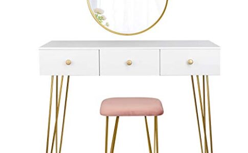 EUGAD Toeletta da Trucco con Sgabello Tavolo Cosmetici con Specchiera da Appendere a Parete Mobile da Trucco Moderno con 3 Cassetti per Camera da Letto Bianco+d’oro 0017SZT