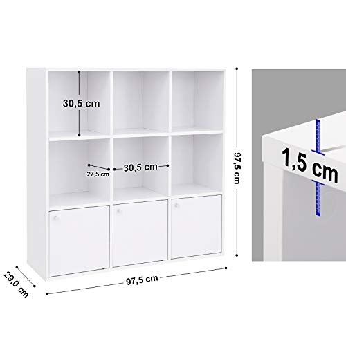 ESPONI I TUOI PREFERITI: Dotato di 6 cubi aperti + 3 armadietti, lo scaffale offre un ampio spazio per organizzare libri scolastici, riviste, giocattoli, decorazioni, calzature e media