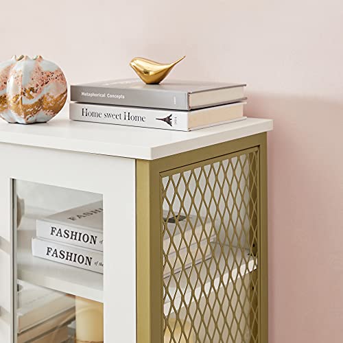 Il mix fa la differenza! Metallo, vetro, color dorato, bianco, ante a doghe, design a griglia… questi elementi sono abilmente uniti in questo mobiletto; vuoi inserirlo nel soggiorno, nel bagno o nella cucina per aggiungere un tocco unico?