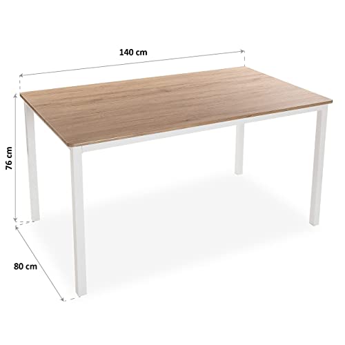 CARATTERISTICHE – Il tavolo da pranzo ha le dimensioni perfette per la tua cucina, terrazza o camera da letto. Il tavolo ha un’altezza di 76 cm, con una lunghezza (profondità) di 140 cm e una larghezza (da lato a lato) di 80 cm. Il peso è di 16,4 kg ed è realizzata in truciolare e rivestita in melaminico e metallo. Colore: Piano di lavoro marrone chiaro e struttura bianca.
