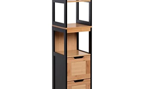 kleankin Colonna Bagno con 2 Cassetti e 3 Vani Aperti, Mobile Bagno in Legno MDF e Bambù 30x30x144.3 cm, Colore Legno