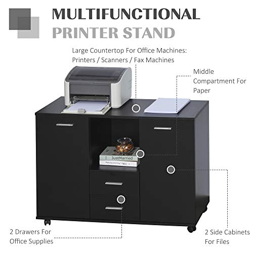 UN PRATICO AIUTO PER L’UFFICIO: Questo armadietto dotato di scomparti a vista e vani chiusi è stato progettato per disporre in modo organizzato fascicoli, carta e attrezzatura per l’ufficio come stampanti, scanner e fax. Adatto per l’ufficio e per lo studio.