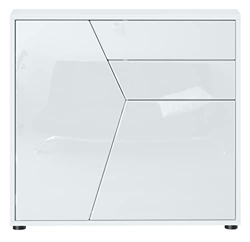 Design: La struttura opaca bianca del mobile e i frontali dalla forma artistica in White High Gloss rendono questo mobile un vero e proprio richiamo visivo. Scegliete la vostra combinazione di colori preferita!